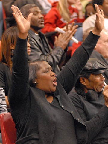 This is Barbara Koggu, who is very proud of her ASU basketball star son. Sometimes the best pictures are in the stands.