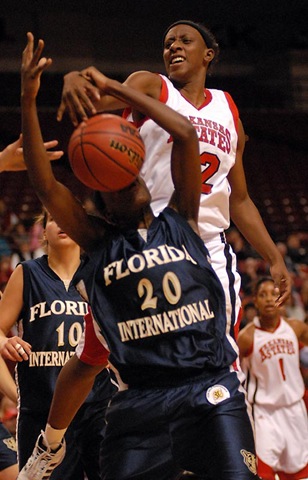 I was back at the ASU Convocation Center last night for the Lady Indians versus Florida International University. The lower photo dominated this morning's sports page.