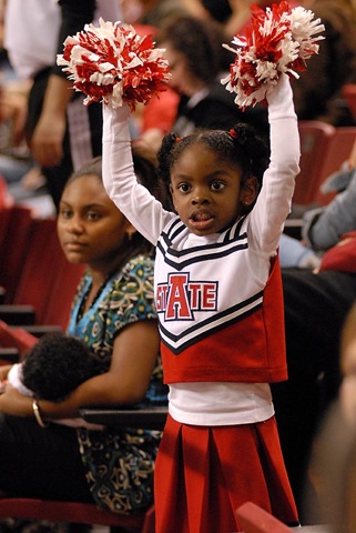 I also got this shot of the daughter of the assistant ASU coach in her cheerleading outfit, but it didn't make the paper.