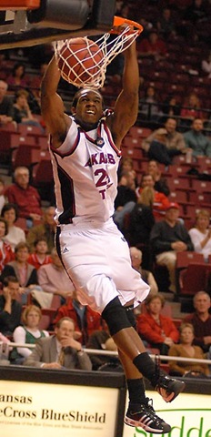 This slam dunk photo dominates the cover of today's sports section. It's customary for photographers to sit on the floor at the end of the basketball court. I'm sufficiently old and stiff enough that I can only stand about 12-15 minutes in that position before I have to struggle to my feet and find another vantage point. Since I would block the view of paying fans by remaining in that spot, I move off to the corner of the court. That turns out to be a good choice, since I would be at a bad angle and too close for the 80-200mm lens to have gotten this and a couple other slam dunk shots.