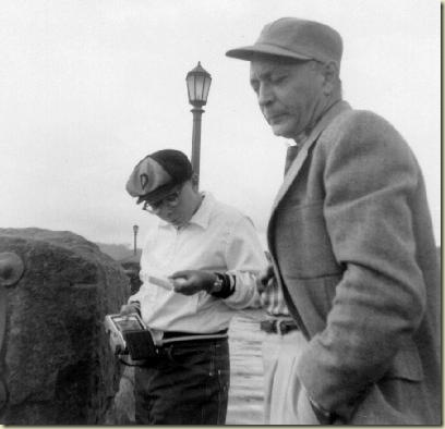 This is me and my father somewhere in the Northeast - possibly Niagara Falls - circa 1955. I've just taken a photo with his Polaroid camera and he's apparently not impressed.