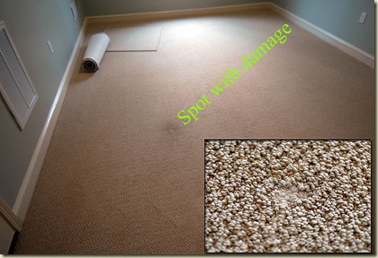 I called him to say we are not satisfied with the condition of the carpet and it will have to be replaced. He asked if I would agree to let a professional carpet cleaner take a shot at it, but gave up on that idea when I pointed out that there's a partial hole worn in it from a cleaning attempt (see inset).