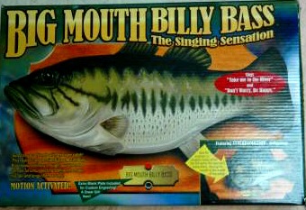And I noticed they were blowing out their stock of Big Mouth Billy Bass - one of the tackiest novelty items ever created - for a mere $4.99 per copy. Well, only a fool would pass up a terrific deal like that, so I bought one as a surprise gift for Maria.